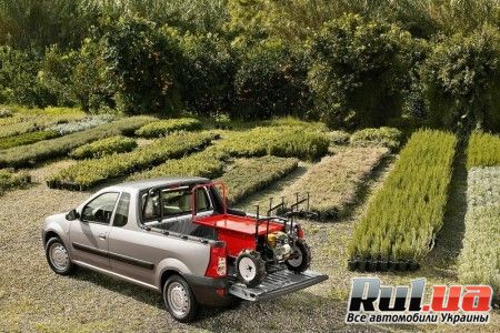 Рено Логан Пикап построен на платформе грузоподъемностью 800 кг, а его багажный отсек в кабине за спинками сидений имеет объем 300 л. Длина и ширина грузовой платформы составляют 1,80 м и 1,37 м.